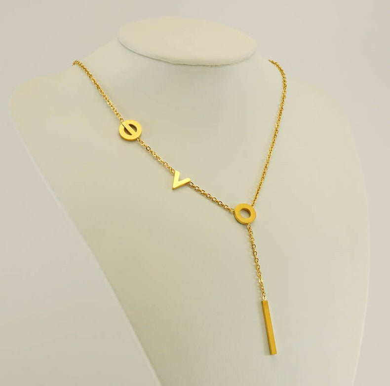 18K Gold-Plated Stainless Steel "LOVE" Asymmetric Pendant Necklace
